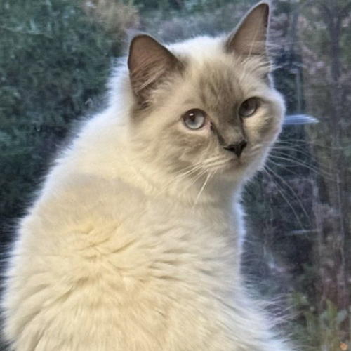 Hij is bij ons geboren en een ontzettend lieve kater. Rustig en gaat goed met andere katers en poezen.